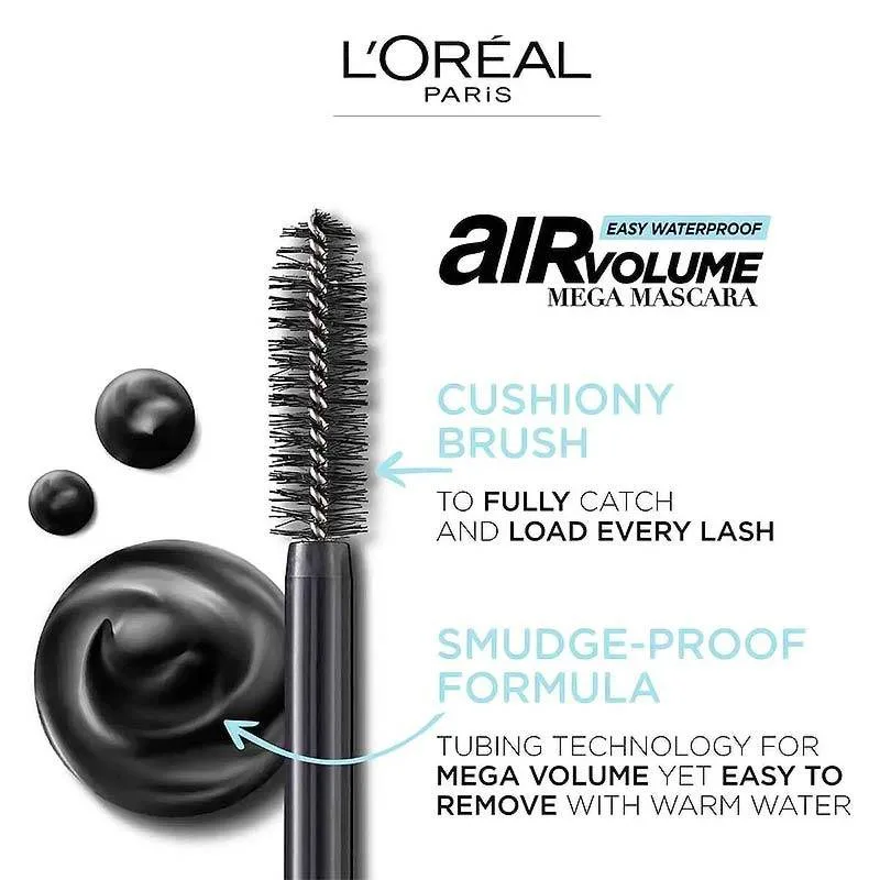 Air Volume Mega Mascara Αδιάβροχη μάσκαρα της Loreal Paris για απίστευτο όγκο, αλλά ελαφριά σαν αέρας.