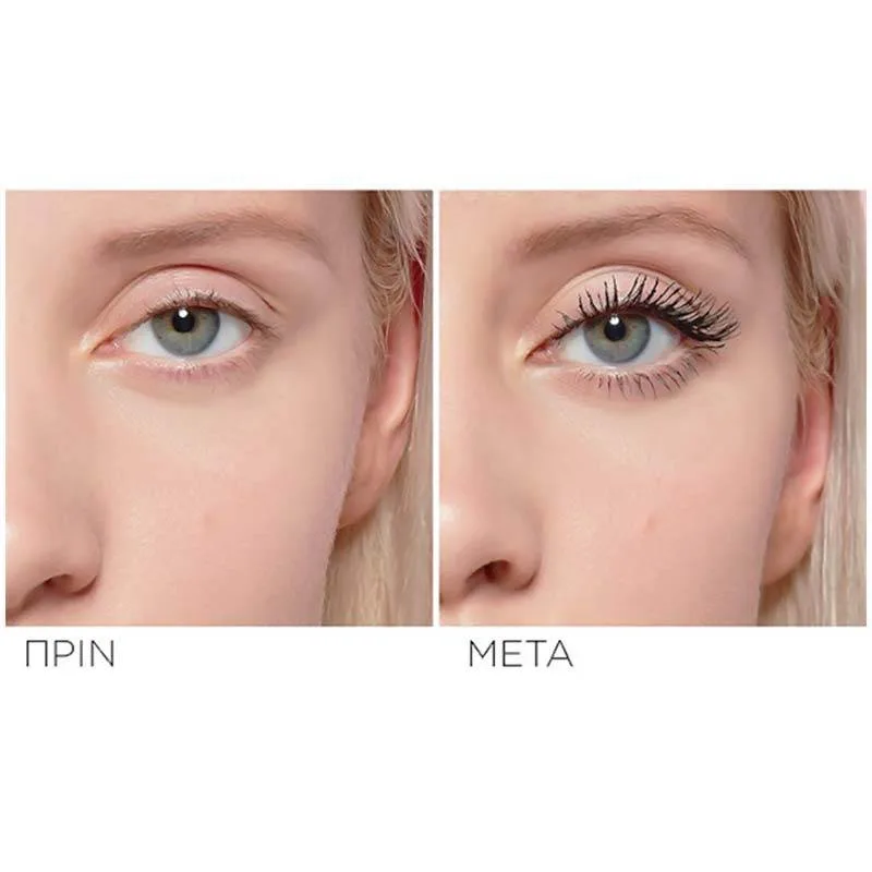 Το μοναδικό βουρτσάκι με διπλού μήκους τριχάκια χαρίζει στις βλεφαρίδες σας εντυπωσιακό όγκο, ενώ ταυτόχρονα διατηρούν μια ανάλαφρη αίσθηση και κίνηση. Τα κοντά τριχάκια αγκαλιάζουν τις βλεφαρίδες από τη ρίζα τους, ενώ τα μακριά γεμίζουν τις βλεφαρίδες σας με έντονο μαύρο χρώμα για βλέμμα που μαγνητίζει.