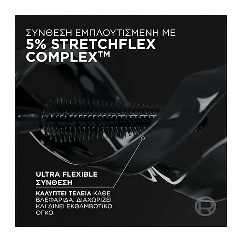 Διαθέτει σύμπλεγμα stretchflex 5% που δίνει την όψη απαλών, γεμάτων βλεφαρίδων.