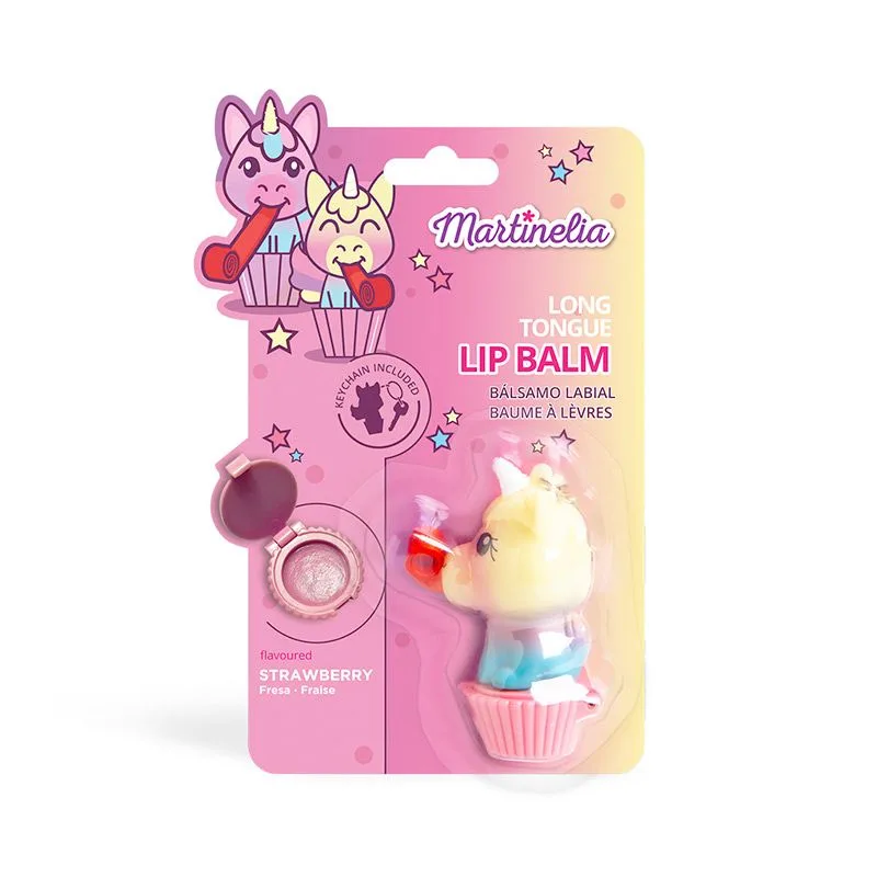 Martinelia Keychain LIP BALM Unicorn Long Tongue in Card 2g Strawberry