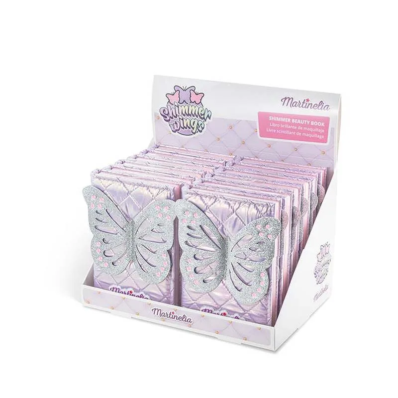Ένα όμορφο σετ Shimmer Wings Beauty Book με ολογραφικά και μεταλλικά χρώματα και μακιγιάζ εμπνευσμένο από τον κόσμο της Martinelia που περιέχει ότι χρειάζεσαι για ένα τέλειο μακιγιάζ.