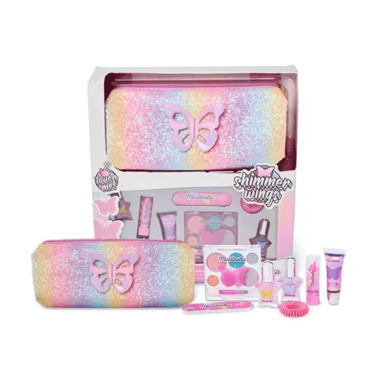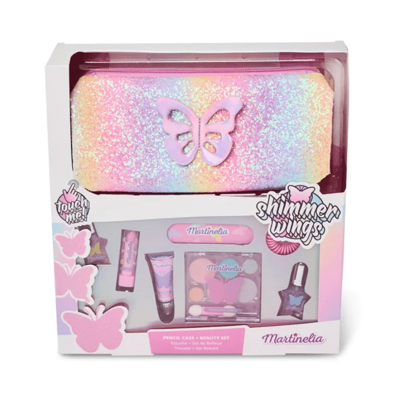 Ένα υπέροχο σετ ομορφία Shimmer Wings Glittered Pencil Case & Beauty από την Martinelia με μια εκπλικτικά όμορφη και λαμπερή θήκη για τα καλλυντικά σου.