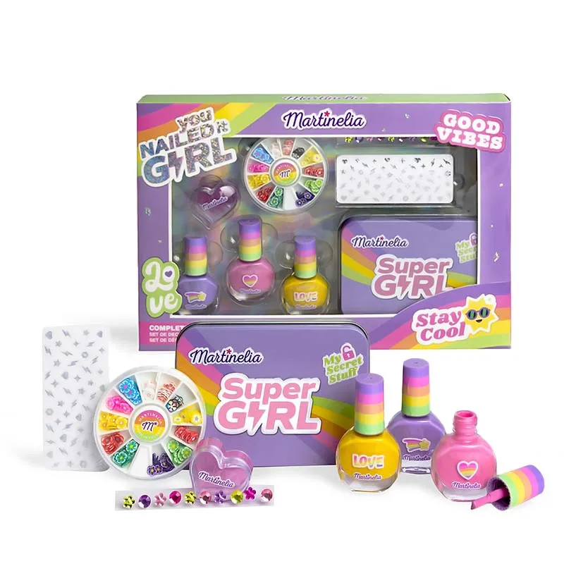 Το υπέροχο σετ ομορφιάς Martinelia Super Girl Complete Nail Art Kit θα σου χαρίσει λάμψη και θα σου φτιάξει τη διάθεση με τα υπέροχα χρώματά του. Από την Martinelia, φτιαγμένο για σένα με αγάπη.