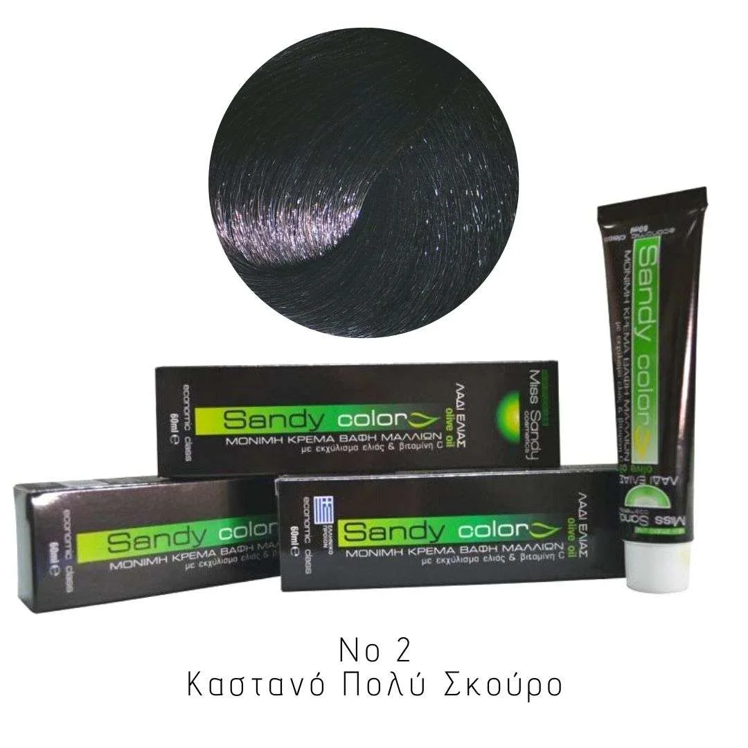 Miss Sandy Βαφή Μαλλιών με λάδι ελιάς και βιταμίνη C No 2 Καστανό Πολύ Σκούρο 60ml