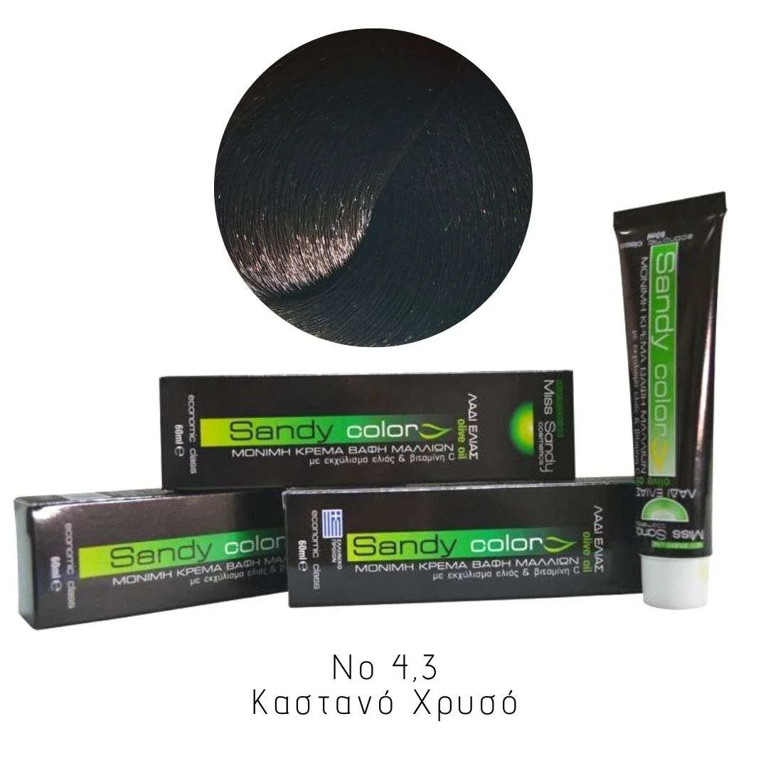 Miss Sandy Βαφή Μαλλιών με λάδι ελιάς και βιταμίνη C No 4,3 Καστανό Χρυσό 60ml