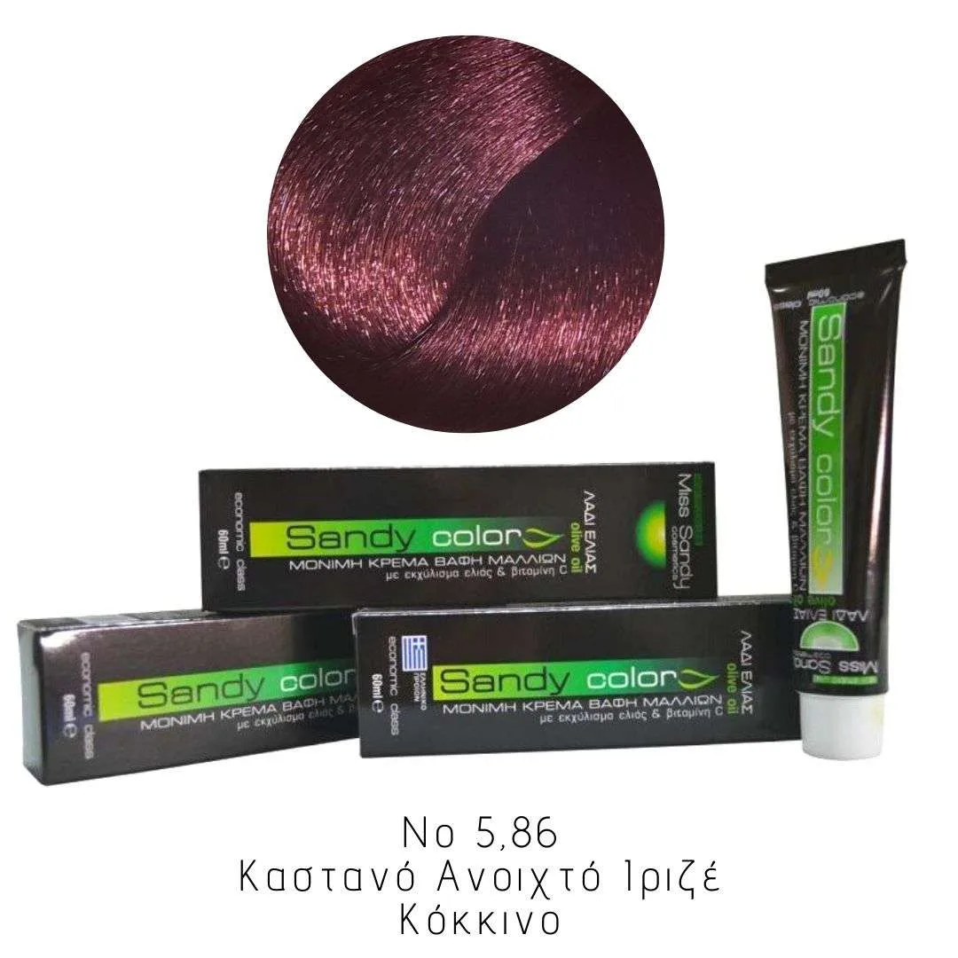 Miss Sandy Βαφή Μαλλιών με λάδι ελιάς και βιταμίνη C No 5,86 Καστανό Ανοιχτό Ιριζέ Κόκκινο 60ml