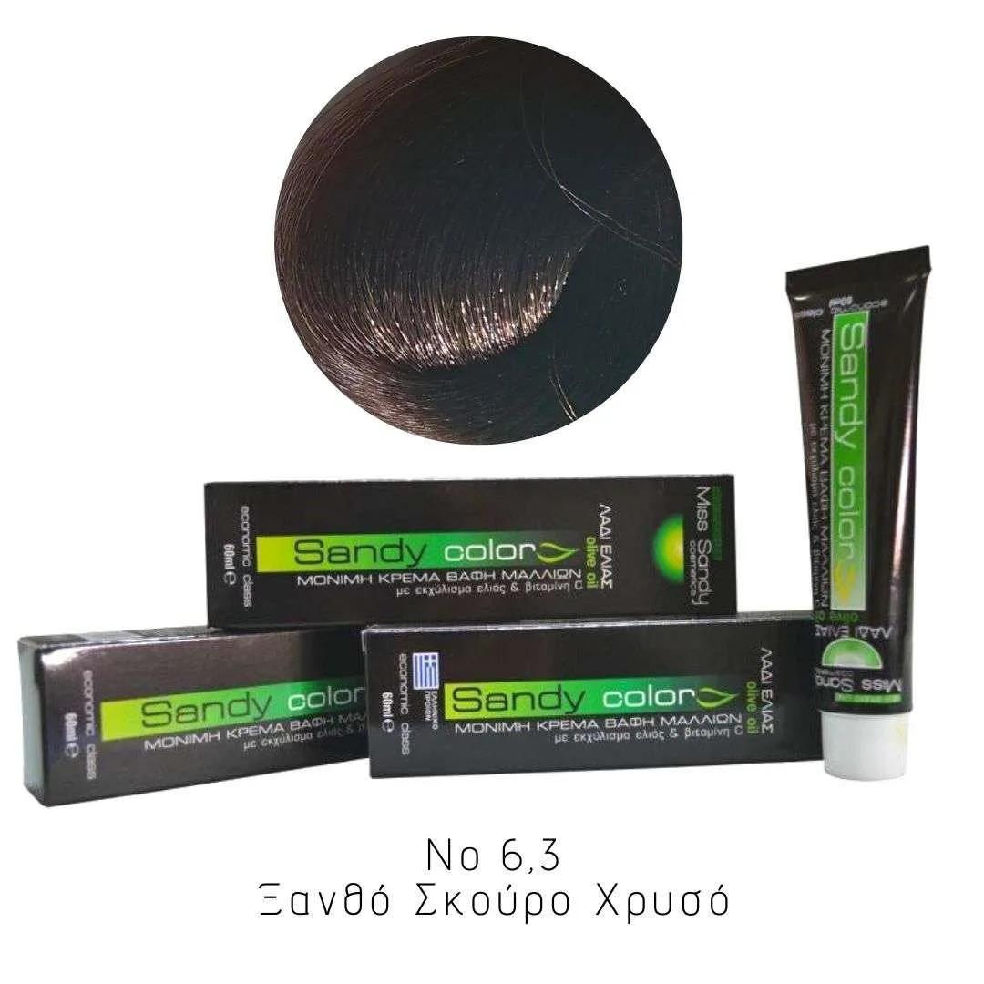 Miss Sandy Βαφή Μαλλιών με λάδι ελιάς και βιταμίνη C No 6,3 Ξανθό Σκούρο Χρυσό 60ml
