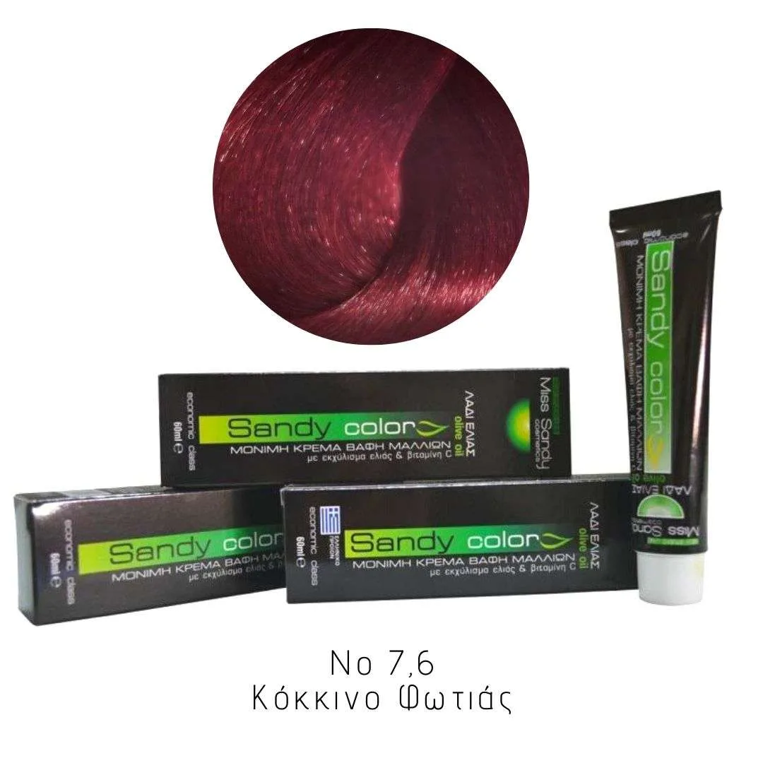 Miss Sandy Βαφή Μαλλιών με λάδι ελιάς και βιταμίνη C No 7,6 Κόκκινο Φωτιάς 60ml