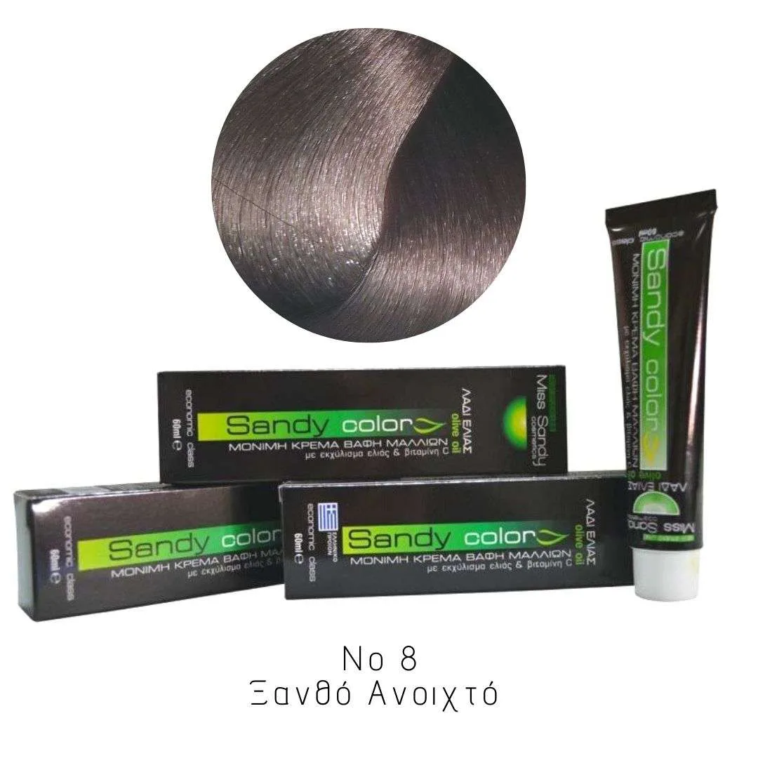 Miss Sandy Βαφή Μαλλιών με λάδι ελιάς και βιταμίνη C No 8 Ξανθό Ανοιχτό 60ml
