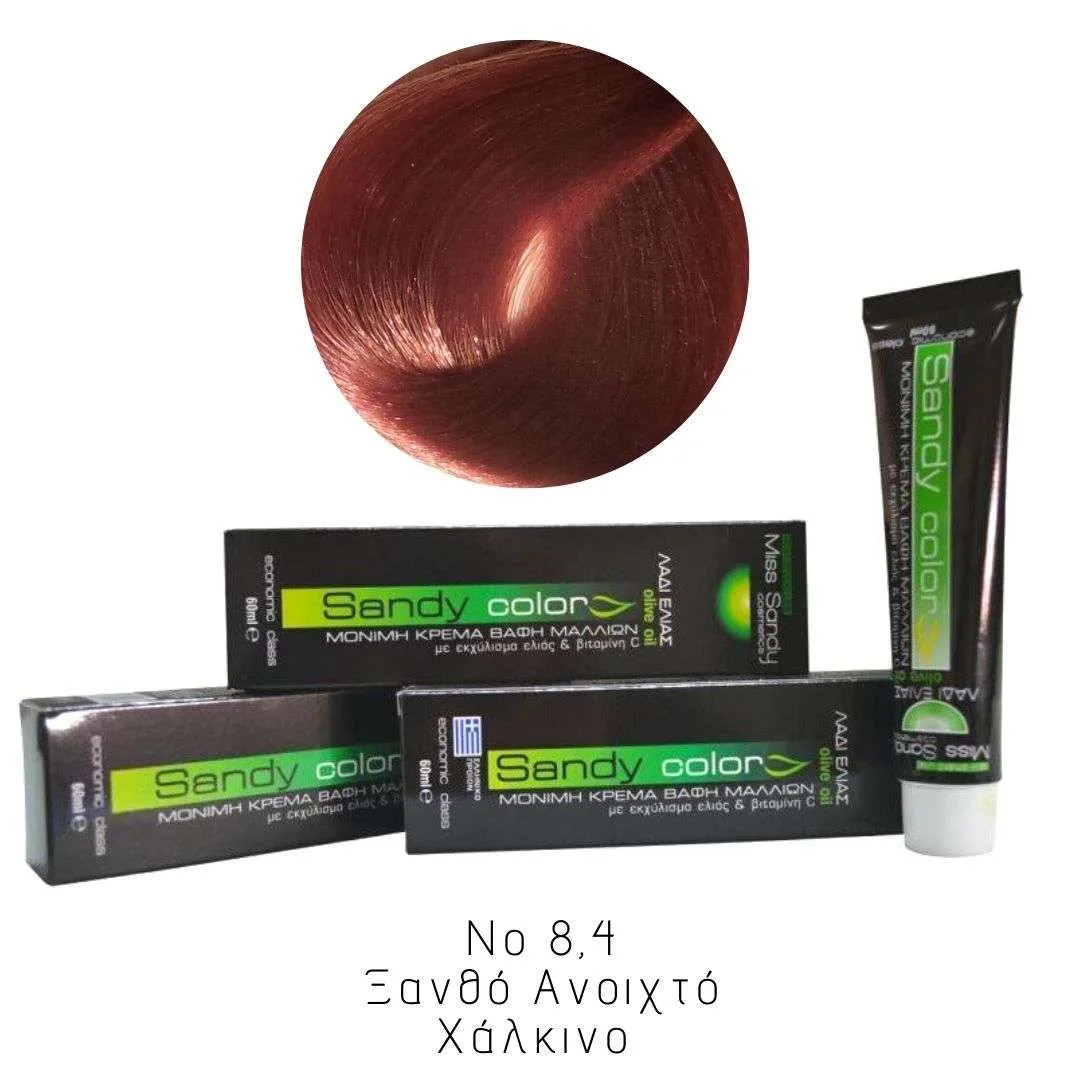 Miss Sandy Βαφή Μαλλιών με λάδι ελιάς και βιταμίνη C No 8,4 Ξανθό Ανοιχτό Χάλκινο 60ml