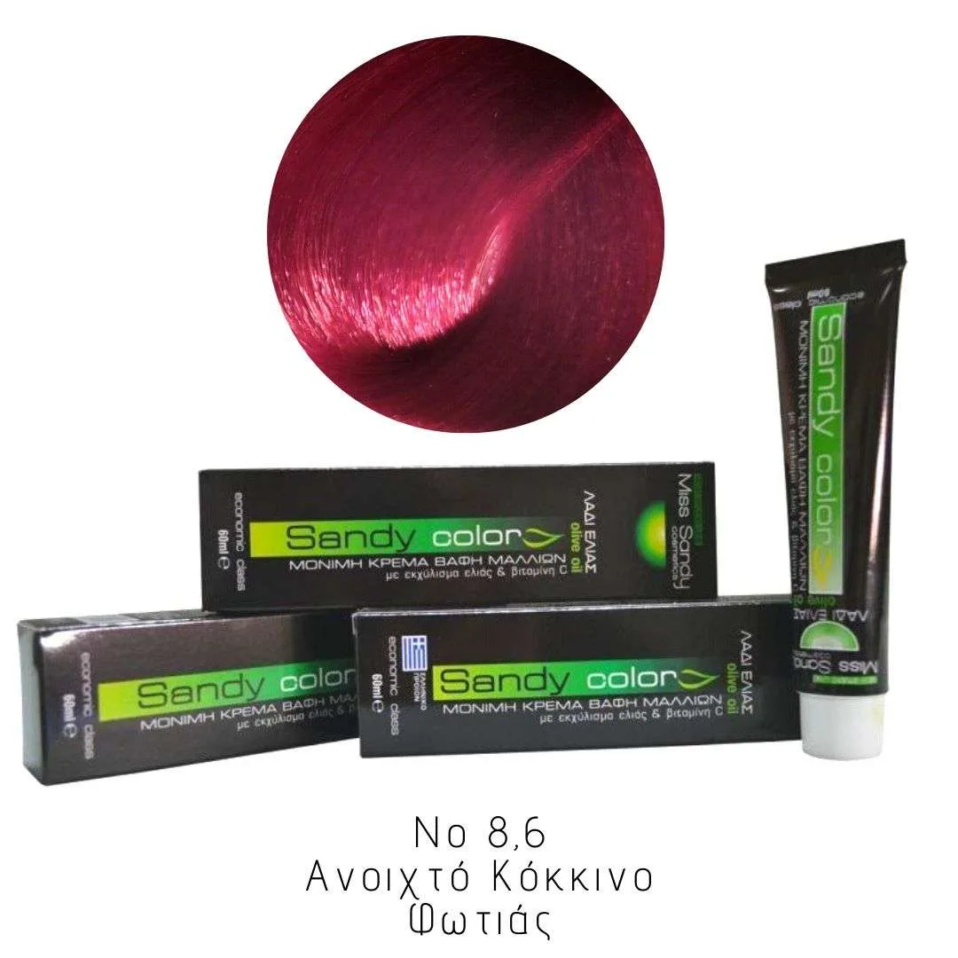 Miss Sandy Βαφή Μαλλιών με λάδι ελιάς και βιταμίνη C No 8,6 Ανοιχτό Κόκκινο Φωτιάς 60ml