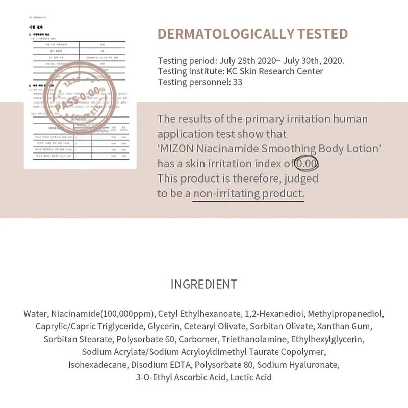Η Κρέμα Σώματος Niacinamide της MIZON είναι ιδιαίτερα ενυδατική και απορροφάται γρήγορα, απαιτώντας μόνο ελαφριά εφαρμογή. Κάνει το δέρμα θαυματουργά απαλό.