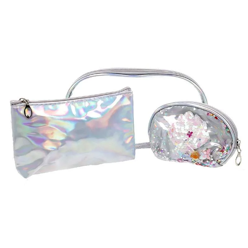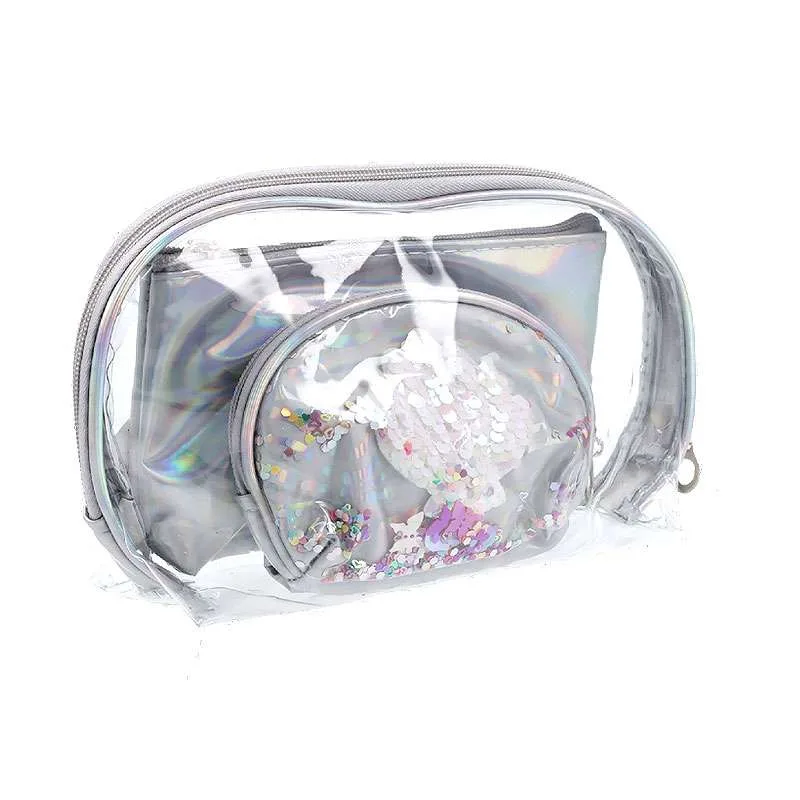 N & H Fashion Mermaid Cosmetic Bag Set 3 pcs Σετ Νεσεσέρ 3 τεμ Ασημί 23 x 17 x 7cm