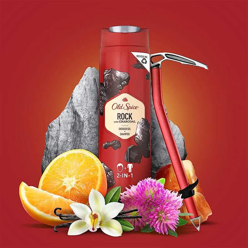 Αφρόλουτρο που προσφέρει απόλυτη καθαριότητα σε σώμα και μαλλιά, ένα αρρενωπό άρωμα και αξεπέραστη φρεσκάδα. Old Spice Rock Shower Gel + Shampoo with Charcoal