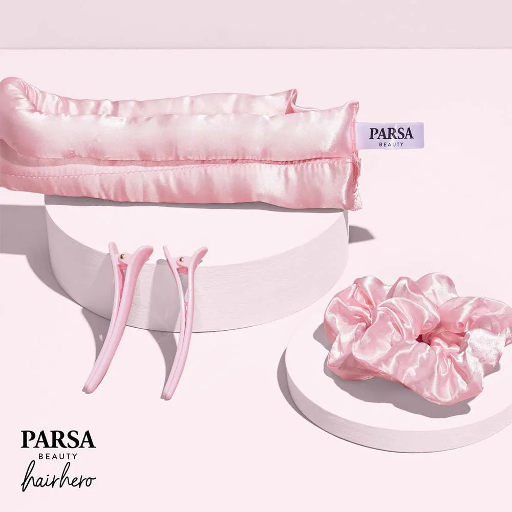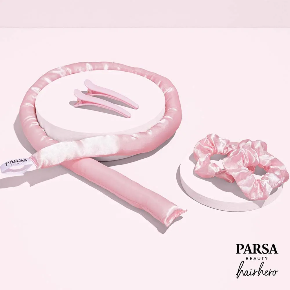 Parsa Heatless Curls Styler Pink Beige Μαλακό Σατέν Ρολό Μαλλιών Για Μπούκλες Χωρίς Θερμότητα Ροζ