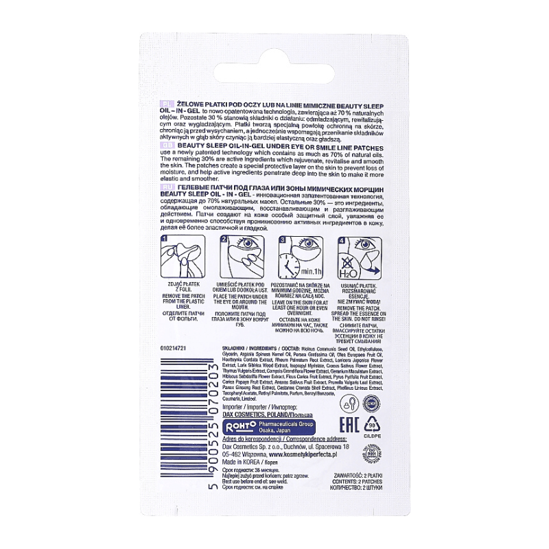 Τα Perfecta Eye or Smile Patches Oil in Gel Beauty Sleep με ενεργά συστατικά που διεισδύσουν στο δέρμα για να το κάνουν πιο ελαστικό και λείο.