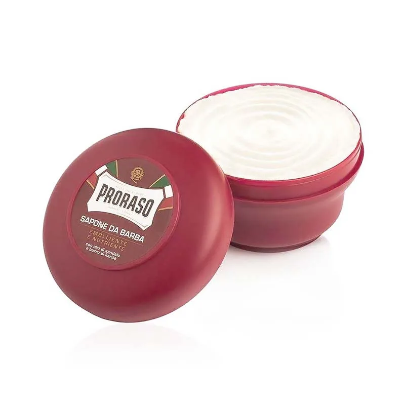 Το σαπούνι ξυρίσματος της Proraso είναι ιδανικό για τις όλες τις επιδερμίδες χάρη στα κύρια συστατικά του που αποτελούνται από έλαιο σανταλόξυλου και βούτυρο καριτέ. Προστατεύει επίσης τα πιο ξηρά δέρματα από την επιθετικότητα του ξυραφιού, διευκολύνοντας το ξύρισμα των πυκνών και σκληρών γενειάδων.