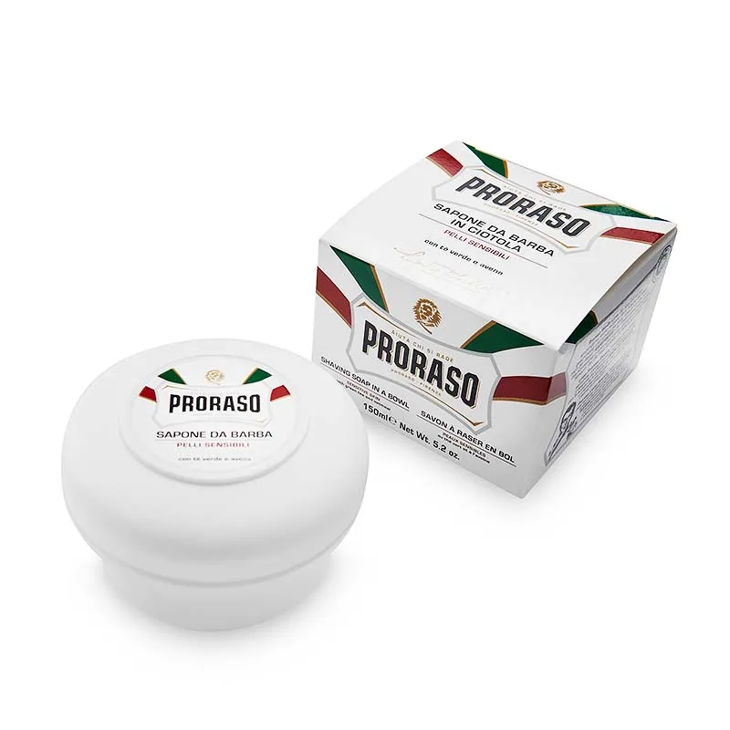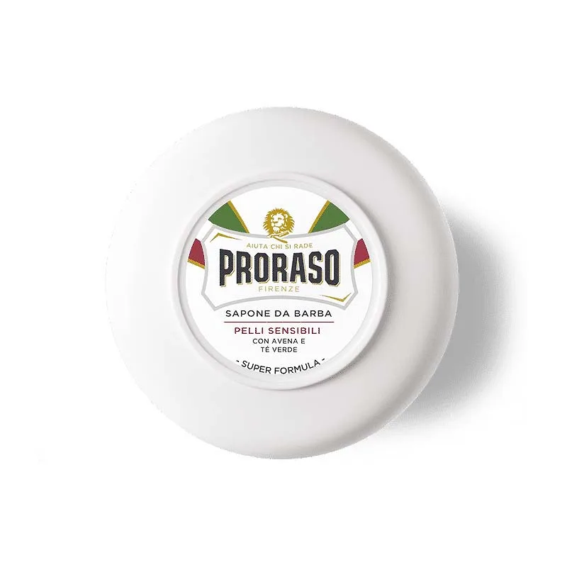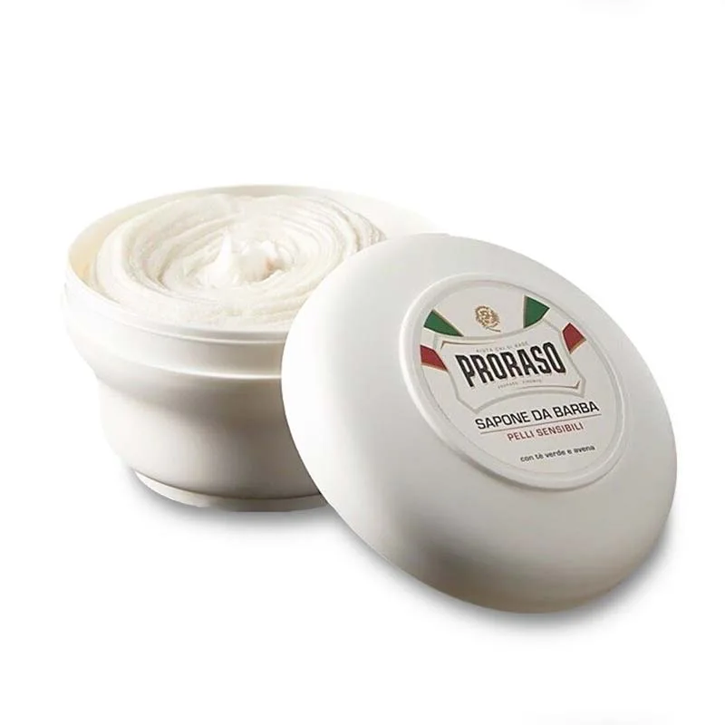 Το σαπούνι ξυρίσματος της Proraso είναι ιδανικό για τις ευαίσθητες επιδερμίδες χάρη στα κύρια συστατικά του που αποτελούνται από βρώμη και πράσινο τσάι, προστατεύει την επιδερμίδα σαν αόρατη ασπίδα, αποτρέποντας τις ενοχλητικές κοκκινίλες.