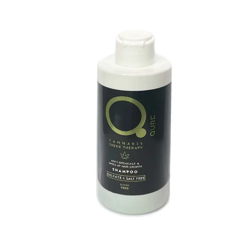 Σαμπουάν και έλαιο μαλλιών Qure Cannabis Sheer Therapy με έλαιο κάνναβης Χωρίς Θειικά Άλατα και Sulfate σιλικόνες.