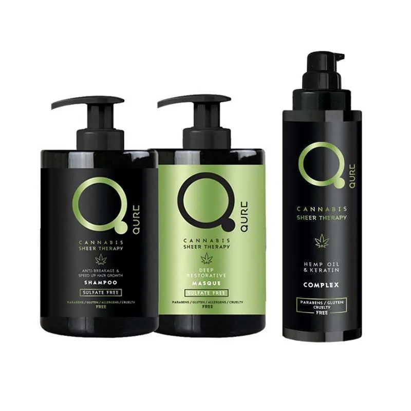 Qure Cannabis Sheer Therapy HAIR Set – Σαμπουάν 300ml, Μάσκα 300ml & Ορός Μαλλίων 100ml