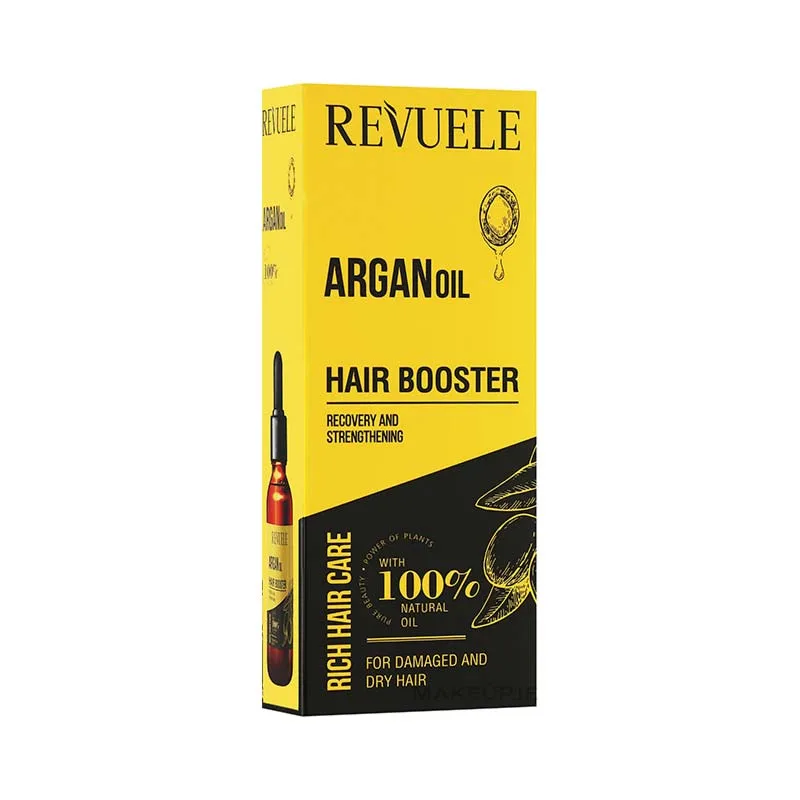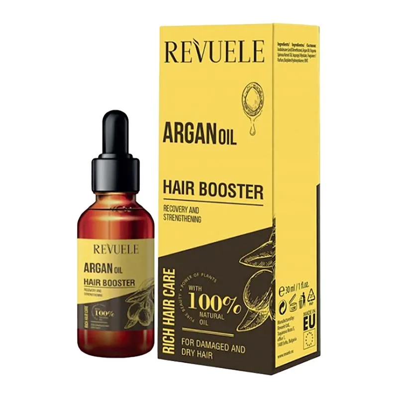 Το REVUELE ARGAN OIL HAIR BOOSTER με 100% φυσικό έλαιο, παρέχει ενδυνάμωση και αποκαθιστά τα ταλαιπωρημένα και ξηρά μαλλιά.