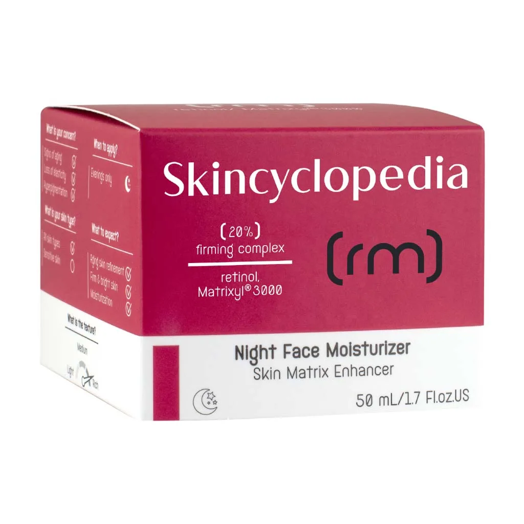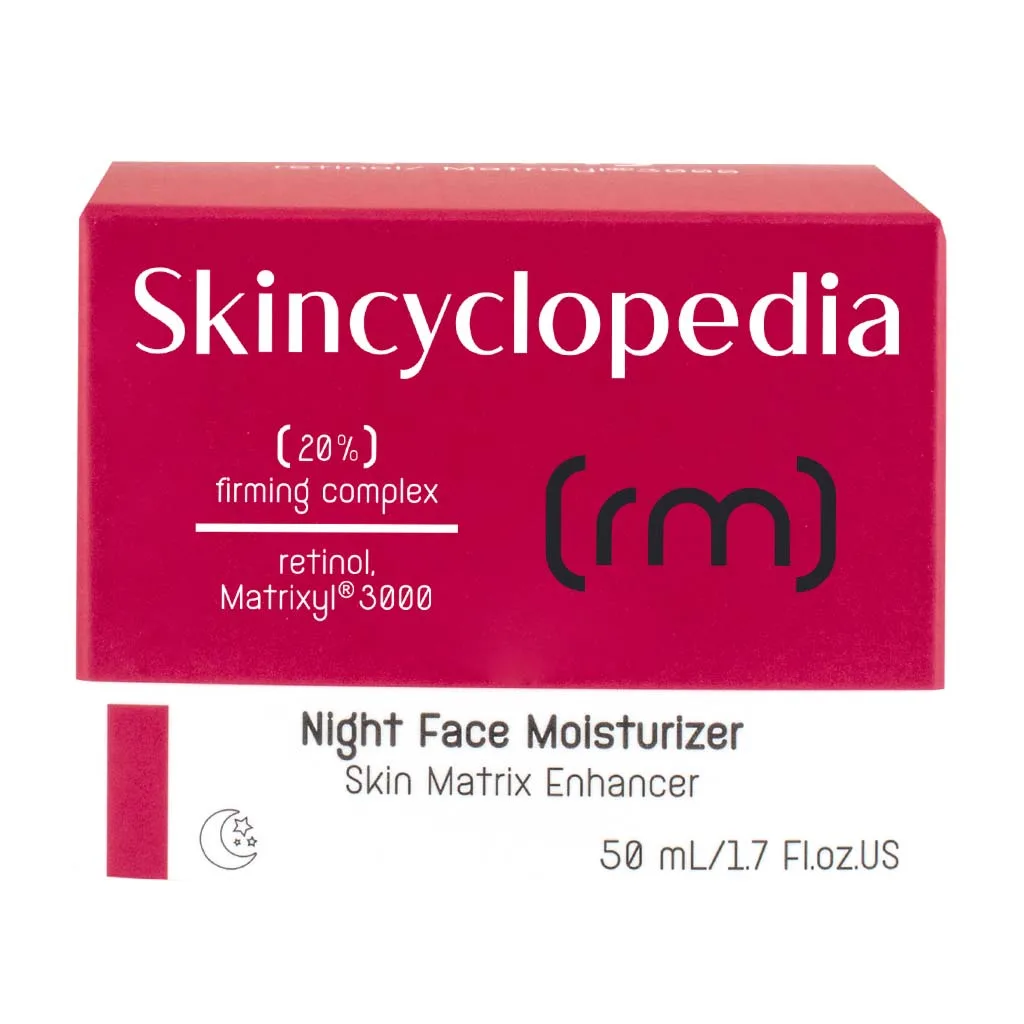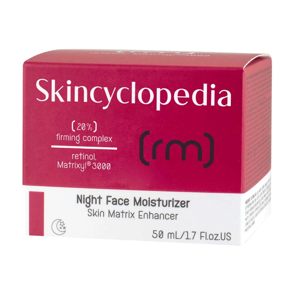 Ισχυρή κρέμα νύχτας Skincyclopedia με ρετινόλη , 20% συσφικτικό σύμπλεγμα, σύμπλεγμα Matrixyl® 3000 και σκουαλένιο. Υπόσχεται να αναζωογονήσει την επιδερμίδα και να δώσει ελαστικότητα στο δέρμα παρέχοντας μια νεανική και λαμπερή λάμψη.