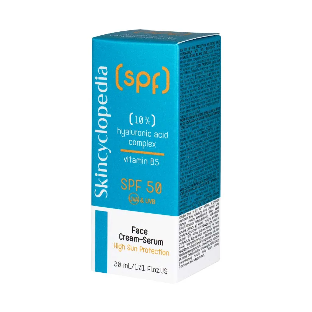Skincyclopedia Sun Protection Face Cream – Serum Αντηλιακός Κρεμώδης Ορός Προσώπου με Υαλουρονικό Οξύ & Βιταμίνη Β5 SPF50, 30ml