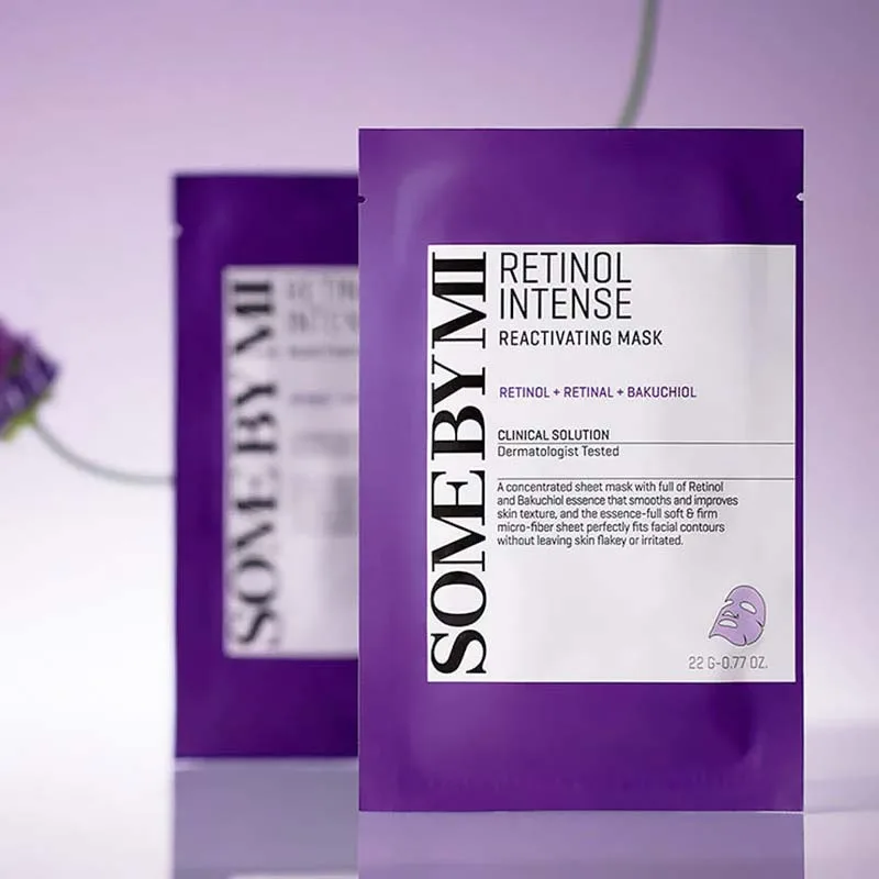 Retinol Intensive Sheetmask από τη Some By Mi κατά των ρυτίδων. Συσφίγγει το δέρμα σταθερά και βοηθάει το δέρμα που έχει υποστεί βλάβη.