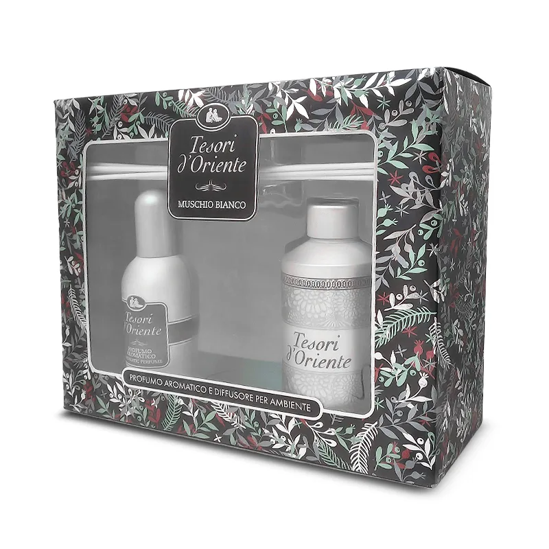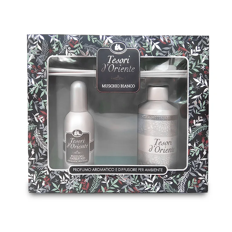 Το Tesori d’Oriente Muschio Bianco Gift Set είναι υπέροχο δώρο που συνδυάζει την προσωπική περιποίησης με την χαλάρωση μέσα στο χώρο δίνοντας ένα ατμοσφαιρικό άρωμα που παραπέμπει στη μαγεία μακρινών, παραδεισένιων περιοχών.
