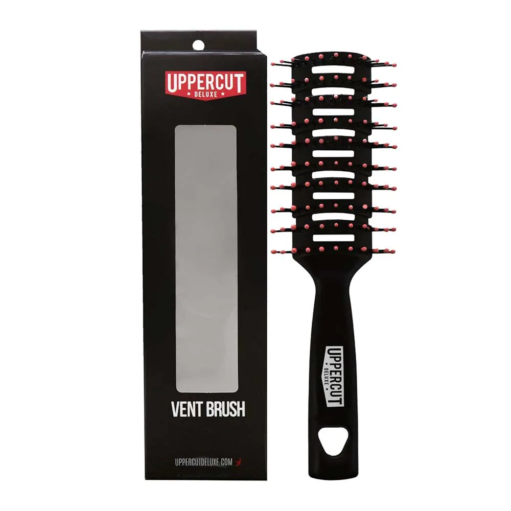 Βούρτσα μαλλιών Vent από την εταιρία Uppercut. Είναι ειδικά σχεδιασμένη έτσι ώστε να κατανέμει ομοιόμορφα τη θερμοκρασία σε όλη την επιφάνεια της βούρτσας μειώνοντας τη φθορά που προκαλείται στην τρίχα από τη θερμότητα και επιταχύνοντας το στέγνωμα.