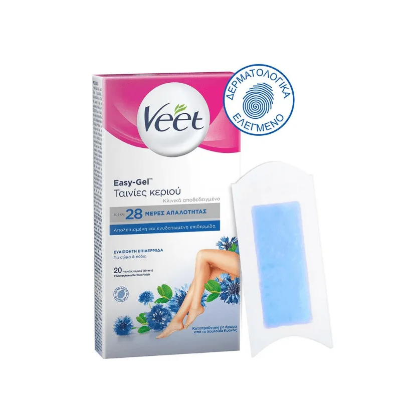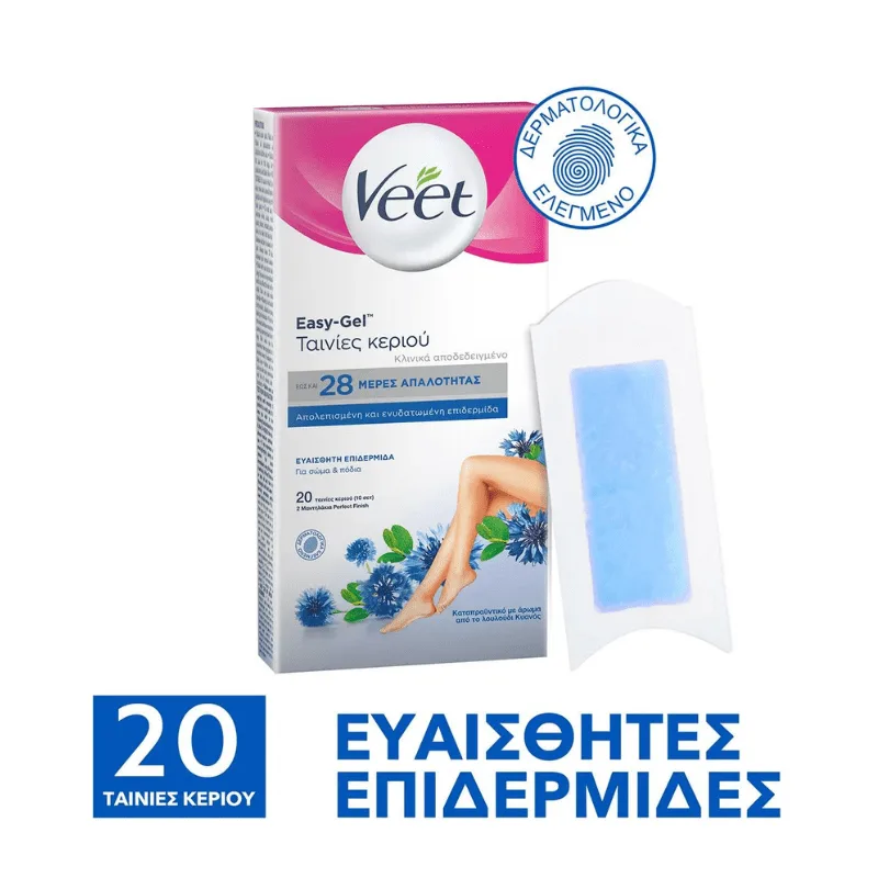Veet Easy Gel Wax Strips Sensitive Skin 20 Ταινίες Αποτρίχωσης Σώματος για Ευαίσθητο Δέρμα