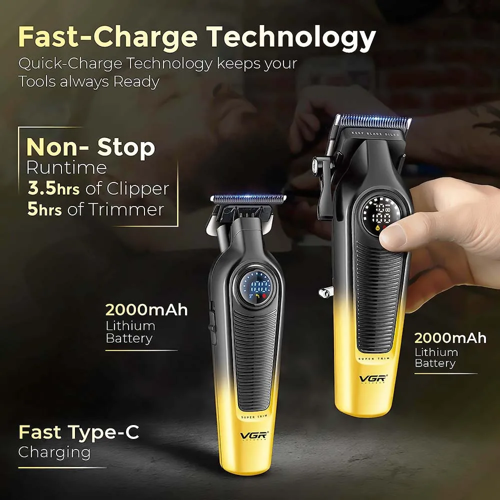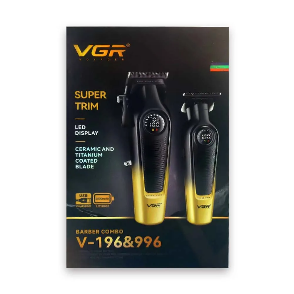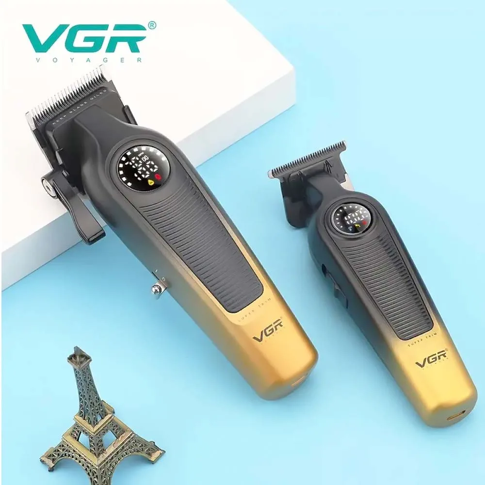 Η VGR V-196 Clipper παρέχει καθαρά και ομοιόμορφα κουρέματα χάρη στις λεπίδες DLC που αντέχουν στη φθορά. Η VGR V-996 Trimmer με T-Blade είναι ιδανική για σβησίματα, περιγράμματα και λεπτομέρειες, διαθέτοντας ισχυρό κινητήρα και αθόρυβη λειτουργία.