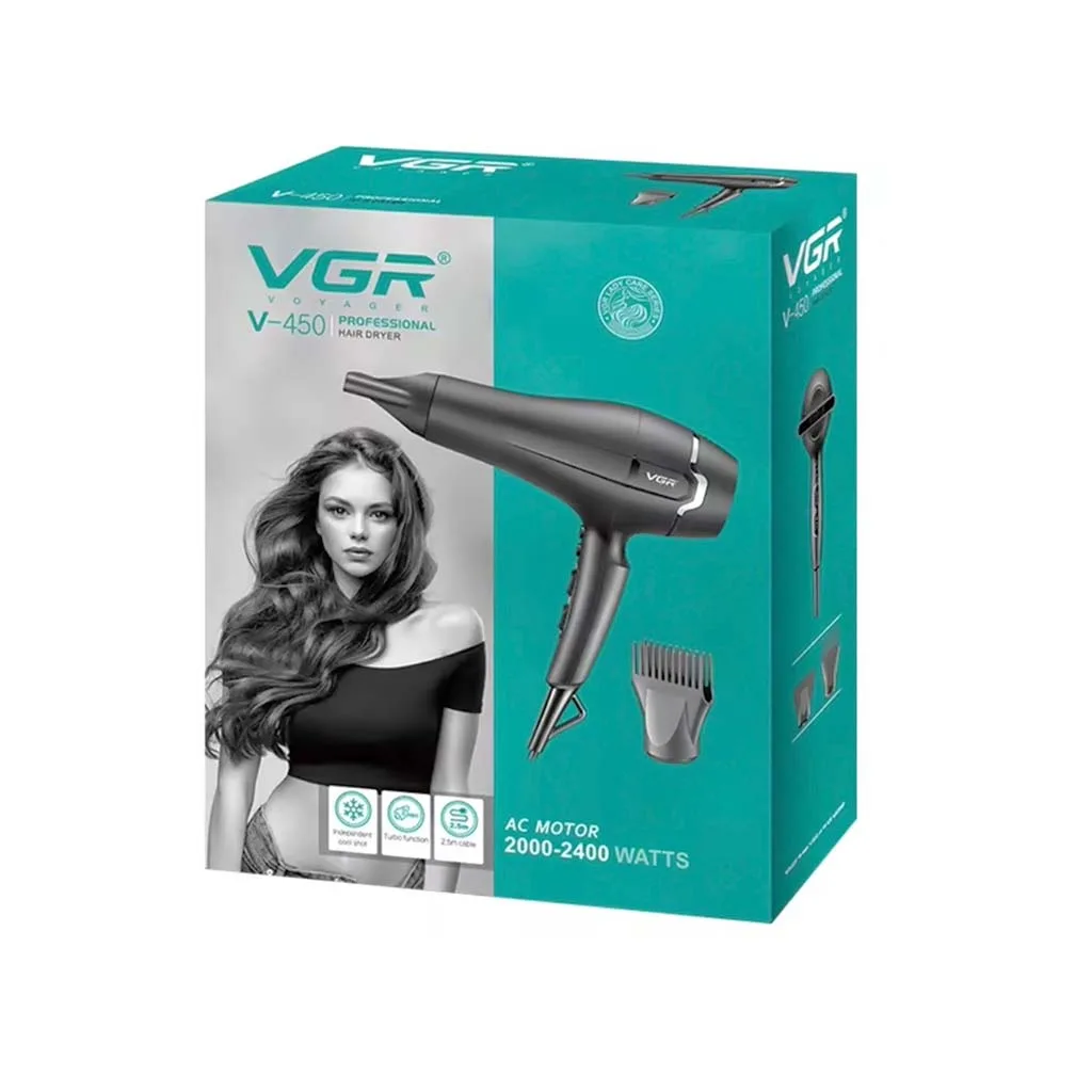 VGR V-450 Professional Hair Dryer Πιστολάκι Μαλλιών 2000-2400W Μαύρο