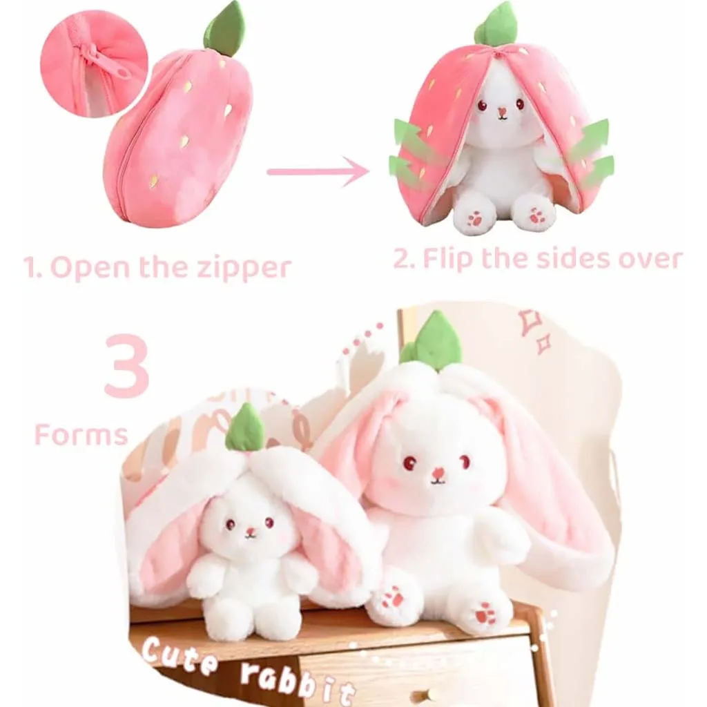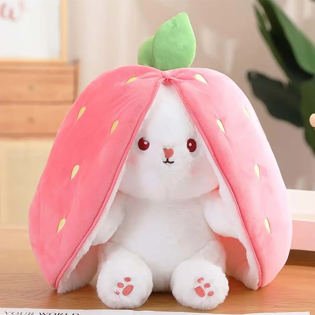 Λούτρινο παιχνίδι που μετατρέπεται από φράουλα ή καρότο σε χαριτωμένο λαγουδάκι με φερμουάρ που κλείνει και ανοίγει.
