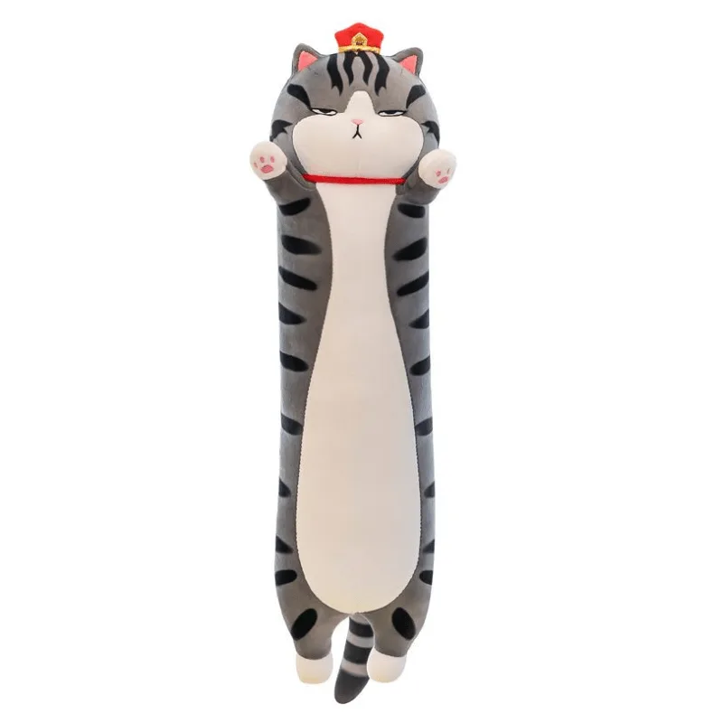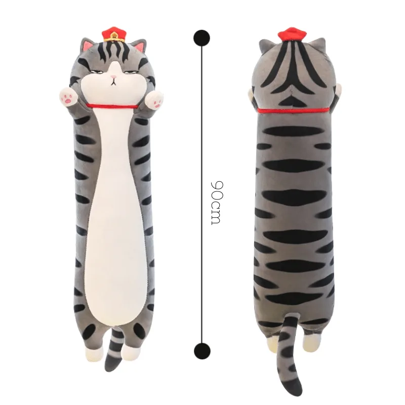 VIP Baby Dolls Stuffed Snob Cat Long Pillow, Λούτρινη Γατούλα Μαξιλάρι Γκρί 90cm
