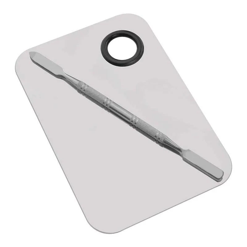 Μεταλλική Παλέτα Ανάμειξης Βερνικιών και υλικών ονυχοπλαστικής με ανοξείδωτη σπάτουλα.