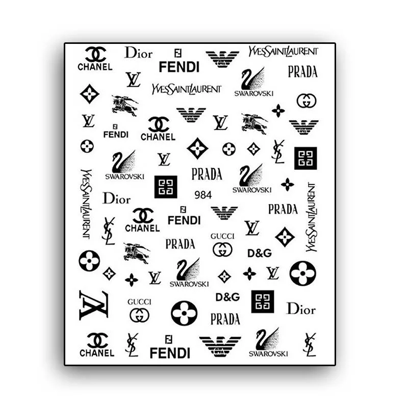 WD Nail Stickers – Διακοσμητικά Αυτοκόλλητα Νυχιών με σχέδιο Διαφορά Brands Μαύρα