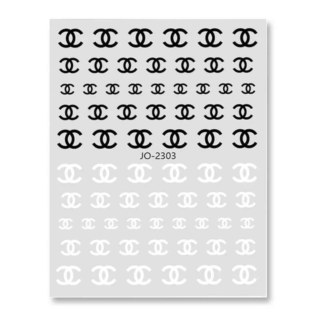 WD Nail Stickers JO -2303 Διακοσμητικά Αυτοκόλλητα Νυχιών με σχέδιο Chanel Λευκό – Μαύρο