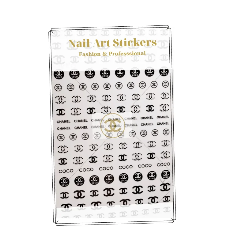 WD Nail Stickers Silver Διακοσμητικά Αυτοκόλλητα Νυχιών με σχέδιο Chanel Μαύρα